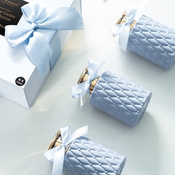 Luxe haut de gamme personnaliser ruban de soie vide bouteille de diffuseur de roseau en verre bleu mat avec bouchons et boîte